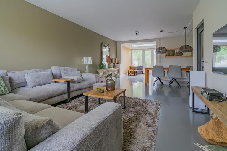 Het royale woongedeelte van ruim 55 m² biedt een sfeervolle leefruimte en beschikt over opvallend veel daglicht door de lichtkoepel in de aanbouw, de openslaande tuindeuren en de grote raampartijen aan de voorzijde. Het zitgedeelte, aan de voorzijde, biedt plaats aan een grote hoekbank en fauteuil en geeft een mooi uitzicht over het straatbeeld. Verder naar achter is het eetgedeelte gesitueerd welke voortreffelijk is afgewerkt met een prachtige maatwerk kastenwand. In de aanbouw, voorzien van vloerverwarming, is een leuke leeshoek gecreëerd maar kan tevens gebruikt worden als speelkamer of thuiswerkplek. Door de nis sta je vanuit de aanbouw in directe verbinding met de keuken. De gehele begane grond is strak afgewerkt met een moderne giet vloer, strakke stucwerk wanden en strakke stucwerk plafonds.