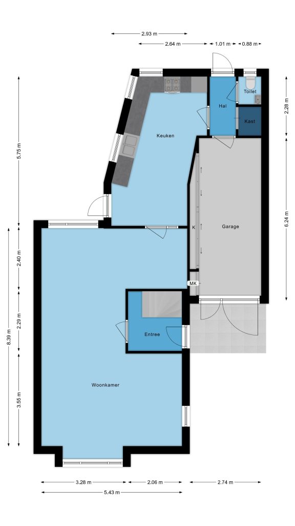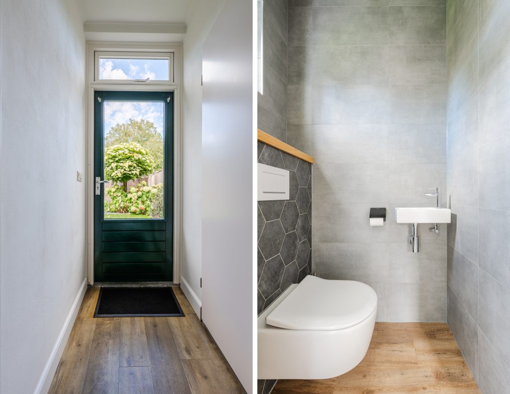 – Portaal met luxe toiletruimte (2021), bergkast en toegang tot grote garage