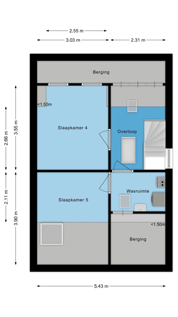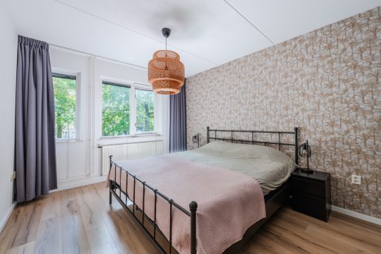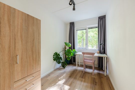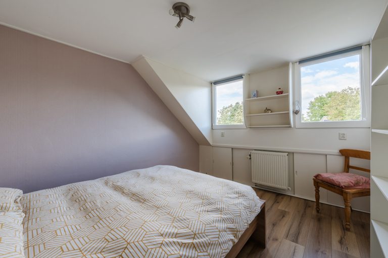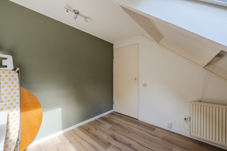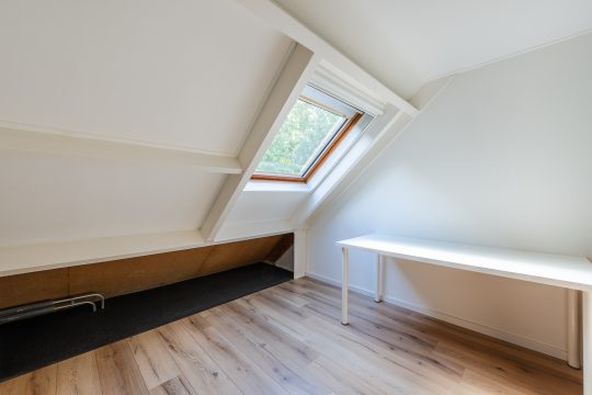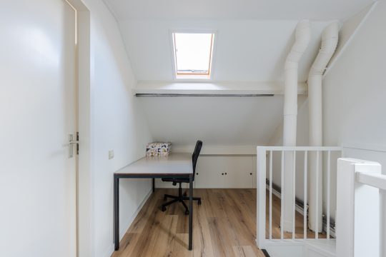 De tweede verdieping is verrassend ruim door de dakkapel aan de achterzijde. Hier bevinden zich nog eens twee slaapkamers, beiden voorzien van een houtlook laminaatvloer. Daarnaast is er een aparte wasruimte met opstelplaats voor de wasapparatuur en de cv-ketel (Nefit, 2019). Bergruimte genoeg door de diverse vaste kasten onder de schuine kant.