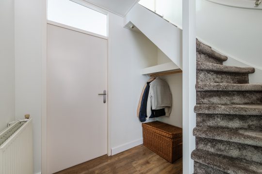 Via eigen oprit bereik je de overdekte entree met hierachter een fijne hal voorzien van moderne PVC vloer, strakke stucwerk wanden en plafonds, een garderobe-nis, een trapopgang naar de eerste verdieping en toegang tot het woongedeelte.