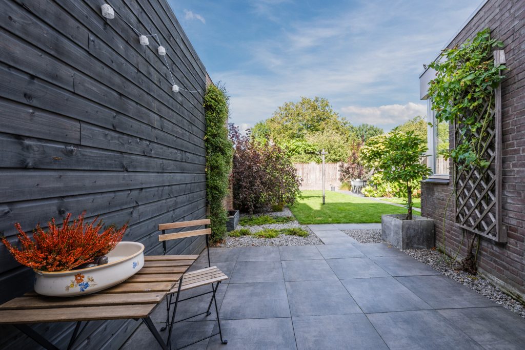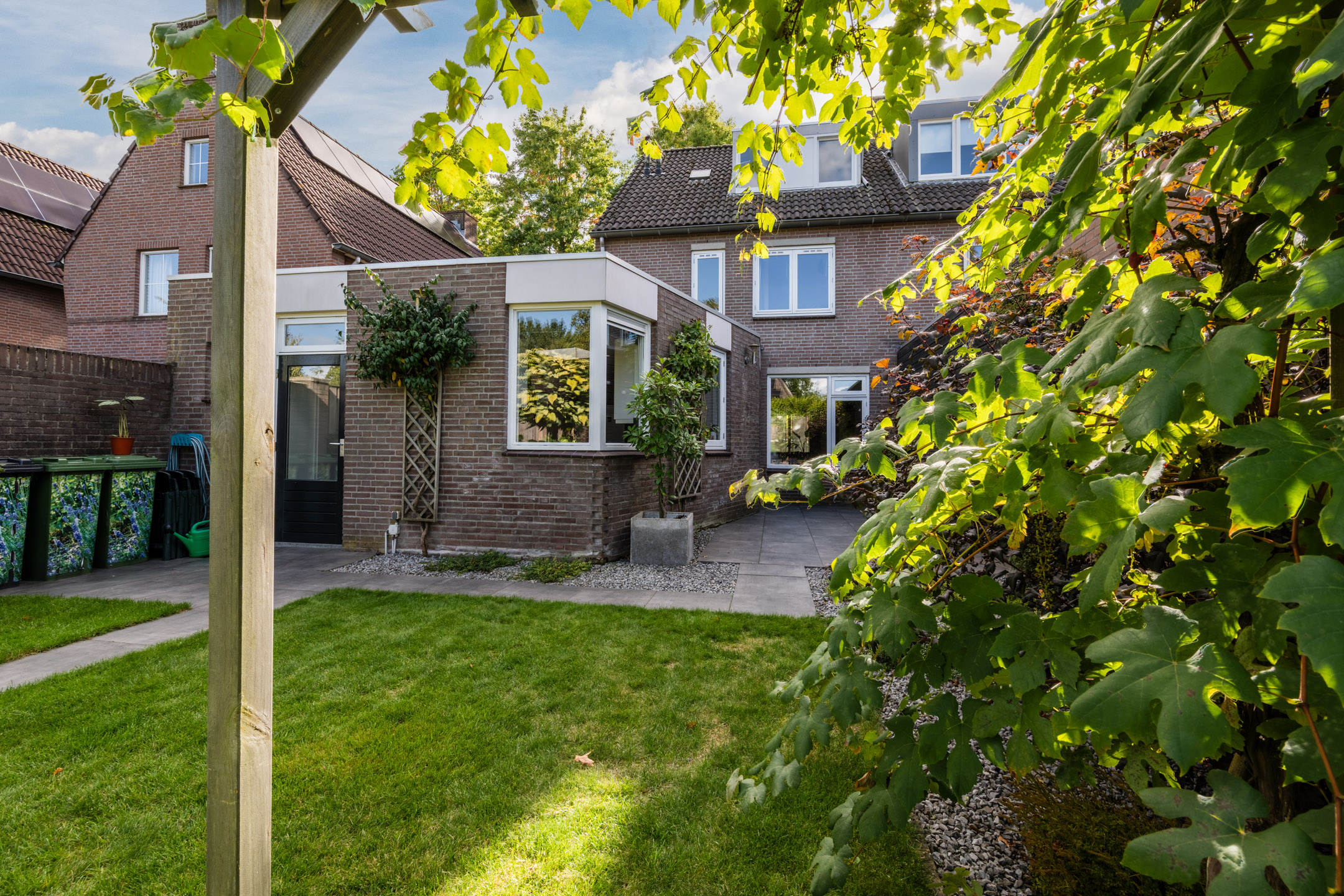 De achtertuin is een absolute troef: volledig vrij gelegen en dus veel privacy. De tuin is fraai aangelegd met een strak betegeld terras, een gazon en diverse vaste beplanting. Dankzij de royale afmetingen is er altijd een plekje in de zon én in de schaduw te vinden.