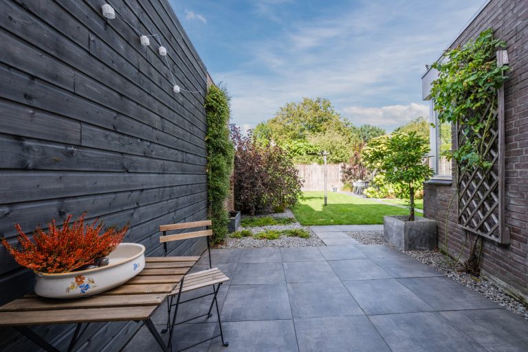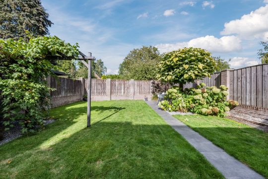 – Achtertuin volledig vrij gelegen, fraai en ruim aangelegd