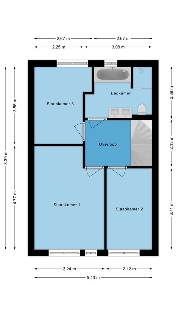 Op de eerste verdieping tref je drie ruime slaapkamers, allen afgewerkt met een moderne laminaatvloer. Het fijne aan deze woning is dat alle drie de kamers van een goed formaat zijn waardoor je hier eenvoudig een master bedroom en twee volwaardige kinderkamers creëert.