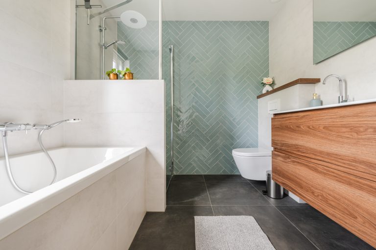 De absolute eyecatcher is de in 2021 vernieuwde luxe badkamer, uitgevoerd met: een luxe antraciete tegelvloer, chique betonlook tegels en een prachtige in visgraat motief wandtegels. Daarnaast zijn alle moderne gemakken zoals een ligbad, inloopdouche met hand- en regendouche, hangcloset en dubbel badmeubel aanwezig. Een moderne badkamer waar elke dag een genietmoment wordt.