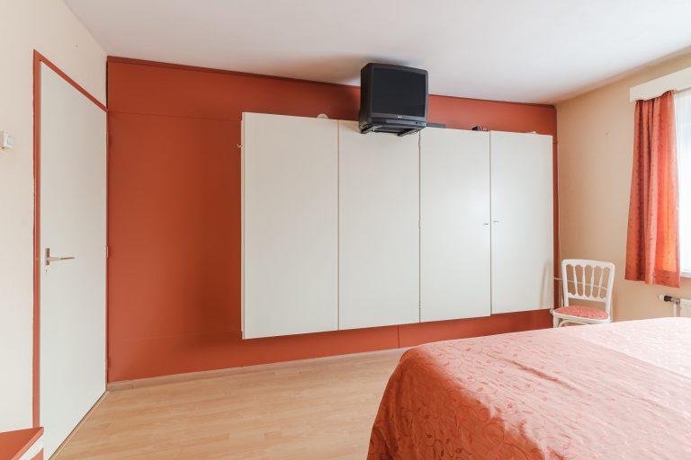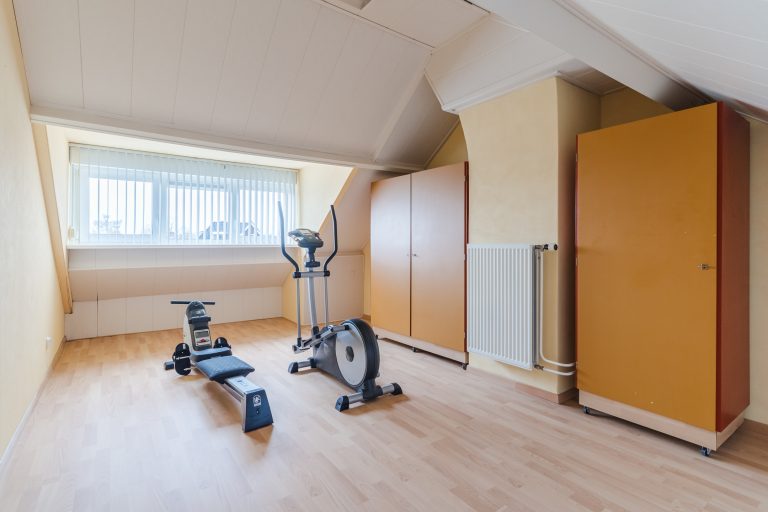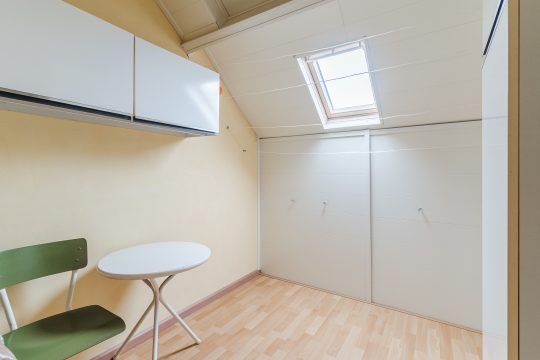 De grote vierde slaapkamer is een volwaardige en sfeervolle ruimte, voorzien van een dakkapel, laminaatvloer en extra bergruimte aan beide zijden onder de dakschuinte. Ideaal als master bedroom, tienerkamer of werkruimte aan huis.