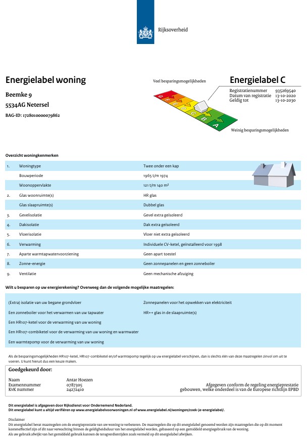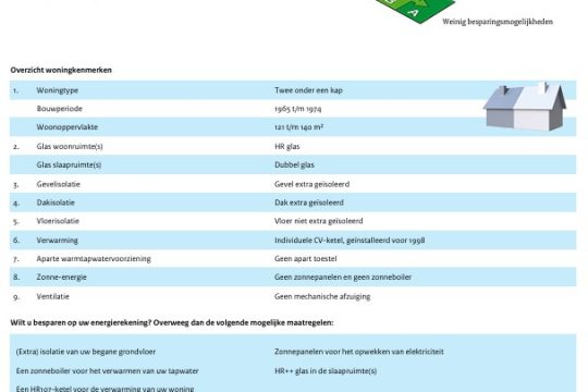 – de woning is voorzien van spouwmuur- en deels dakisolatie.