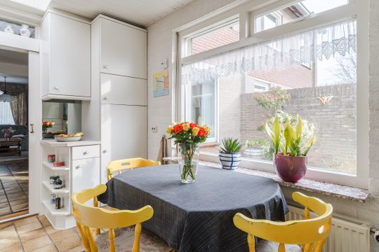 – de woning beschikt over grotendeels kunststof en deels houten kozijnen met HR isolerende beglazing.