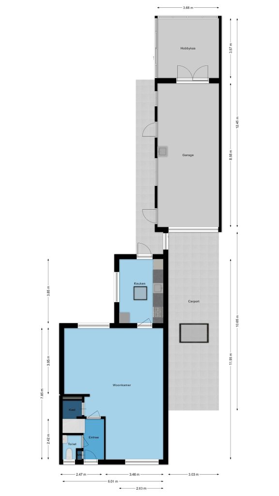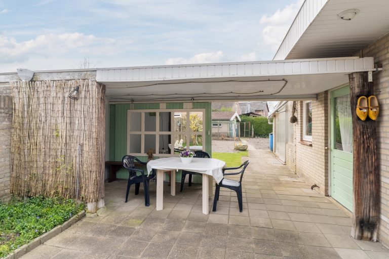 Buiten ervaar je direct de ruimte en mogelijkheden van dit perceel. De voortuin is verzorgd aangelegd met bestrating en beplanting en geeft toegang tot de oprit met een ruim 10 meter diepe carport, voorzien van een lichtkoepel.