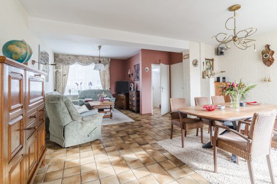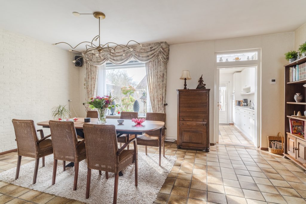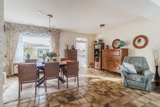 De ruime L-vormige woonkamer voelt direct comfortabel aan en biedt volop leefruimte voor een gezellige zithoek en een royale eethoek. Dankzij de grote raampartijen geniet je hier van een prettige lichtinval gedurende de hele dag. De praktische trapkast zorgt voor extra bergruimte.