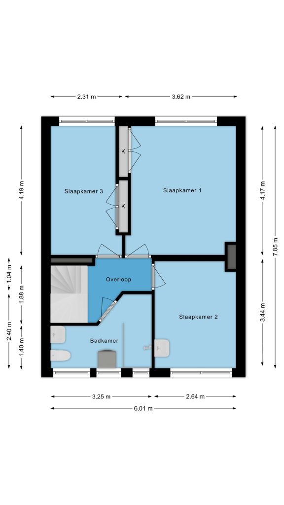 Alle slaapkamers zijn keurig afgewerkt met een laminaatvloer en bieden volop ruimte voor een bed, kast en eventueel een bureau. Twee kamers beschikken bovendien over een dubbele inbouwkast, wat zorgt voor extra praktische opbergruimte.