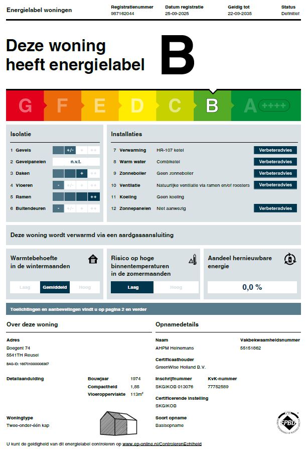 – de woning is voorzien van dak- en spouwmuurisolatie, beiden in 2024 aangebracht.