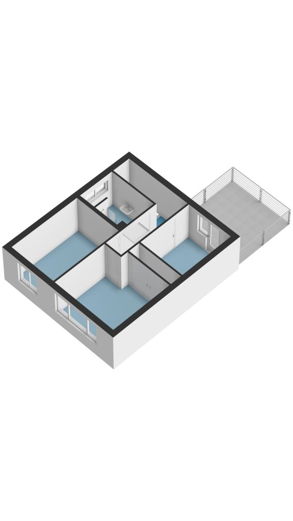 Overloop met een laminaatvloer en toegang tot de drie slaapkamers en de badkamer.