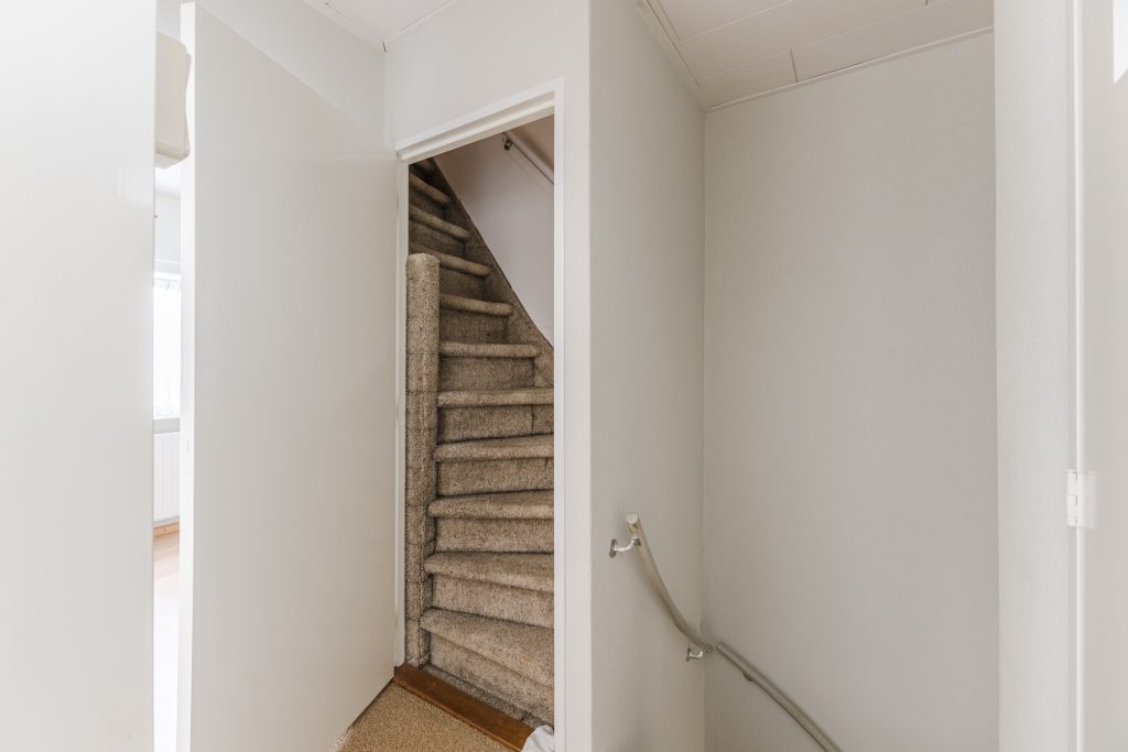 Zodra je binnenstapt ervaar je direct de verzorgde afwerking en prettige sfeer. De hal is voorzien van een nette tegelvloer en geeft toegang tot de vernieuwde meterkast met maar liefst 7 groepen, 2 aardlekschakelaars en 2 glasvezelaansluitingen. Hier vind je ook het gedeeltelijk betegelde toilet met fonteintje en een praktische trapkast voor extra bergruimte. Vanuit de hal loop je door naar de woonkamer en neem je de trap naar boven.
