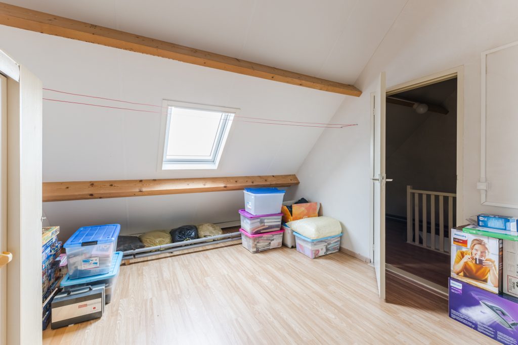 In 2015 is het dak verhoogd en volledig geïsoleerd, waardoor deze verdieping is getransformeerd tot een volwaardige extra woonlaag. Via de vaste trap bereik je de voorzolder met laminaatvloer, een fijne ruimte die je kunt gebruiken als berging, werkplek of speelruimte.