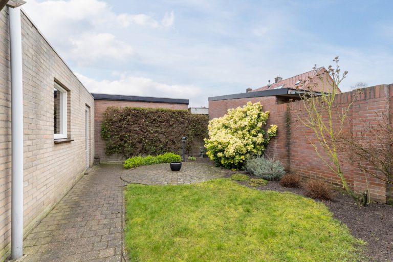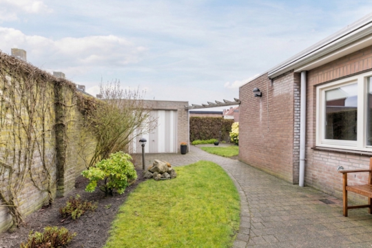 De maar liefst 16 meter diepe achtertuin biedt volop privacy en is een heerlijke plek om te ontspannen. De tuin is fraai aangelegd met sierbestrating, een gazon en diverse beplanting die zorgen voor een groene en sfeervolle uitstraling. Dankzij de zonneluifel zit je ook op warme dagen comfortabel in de schaduw. Via de achterom met dubbele poort is de tuin gemakkelijk bereikbaar.