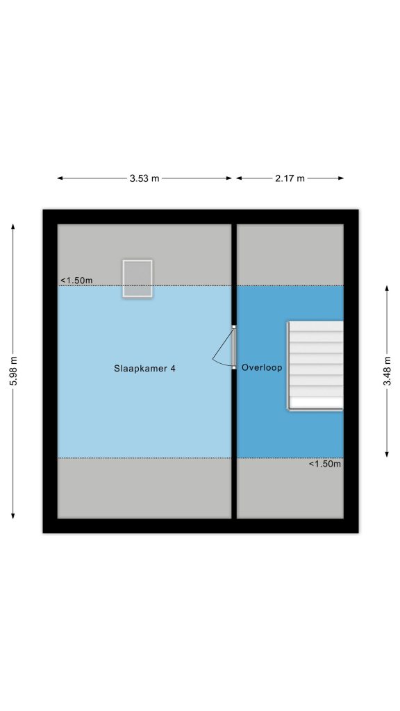 De grote vierde slaapkamer is een heerlijke, volwaardige kamer met een laminaatvloer en een Velux dakvenster dat zorgt voor prettig daglicht. Deze verdieping is ideaal als ouderslaapkamer, tienerkamer of rustige thuiswerkplek en biedt dankzij de dakverhoging opvallend veel extra ruimte.