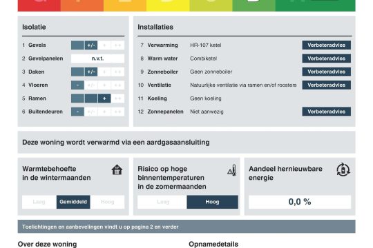 – de woning is voorzien van dak- en spouwmuurisolatie, alsmede vloerisolatie ter plaatse van de uitbouw.