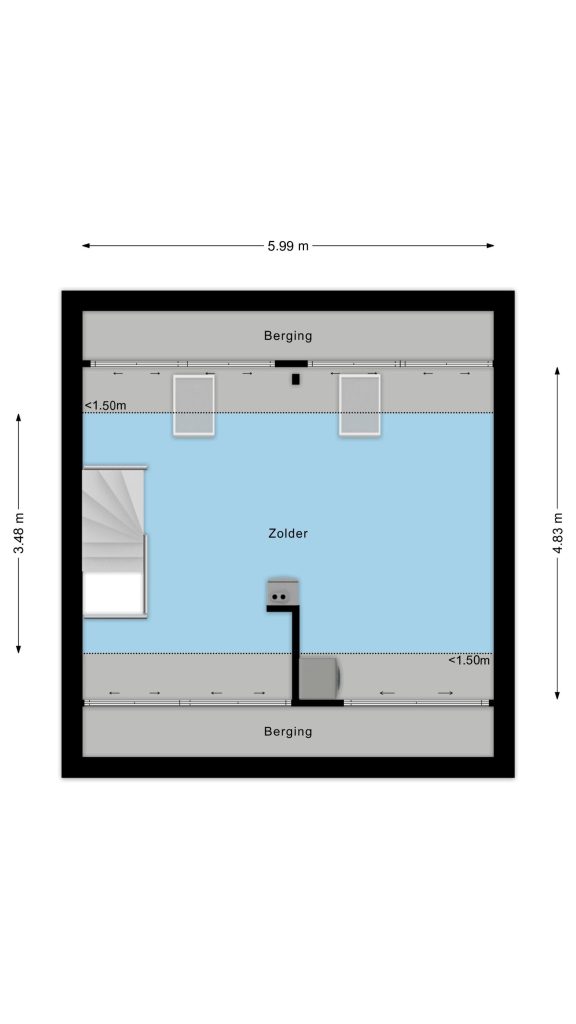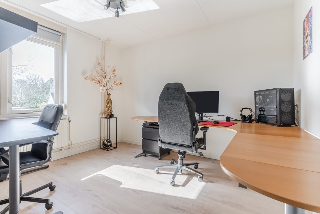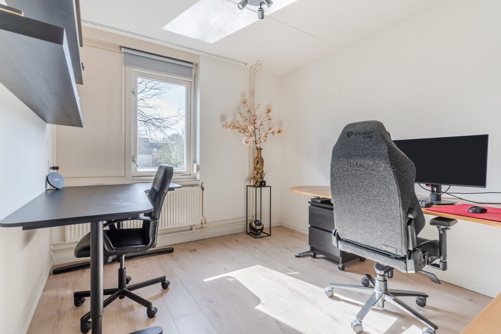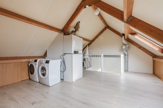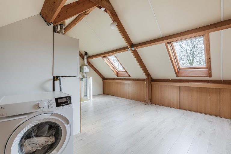Via een vaste trap bereik je de zeer ruime zolderverdieping. Deze is keurig afgewerkt met dezelfde moderne laminaatvloer en beschikt over twee grote Velux dakramen die zorgen voor veel daglicht. Bergruimte onder de schuine kanten, mechanische ventilatie unit en de Nefit Topline HR ketel uit 2010 zijn hier aanwezig. Deze verdieping biedt de mogelijkheid om eenvoudig een extra slaapkamer te realiseren.