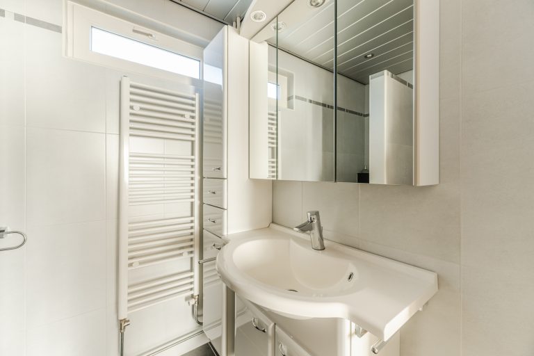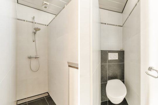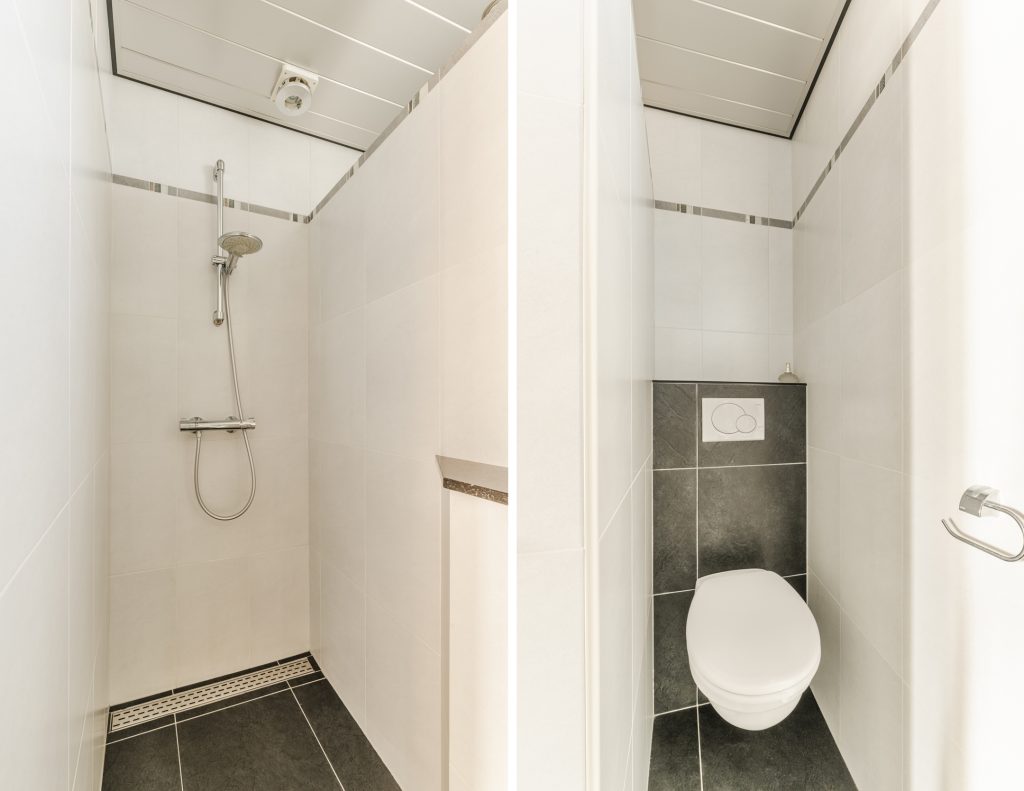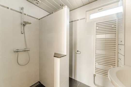 De volledig betegelde, gemoderniseerde badkamer is een echte plus: strak en eigentijds ingericht met een inloopdouche, wandcloset, wastafelmeubel en designradiator. Een comfortabele ruimte waar je jarenlang van kunt genieten.