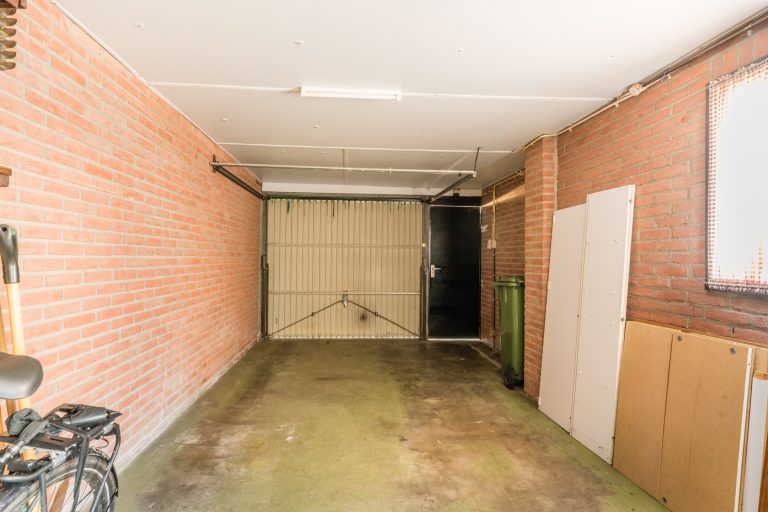 In de tuin staat een riante garage, bereikbaar via een stalen kanteldeur vanaf de oprit en voorzien van een separate loopdeur. Aan de achterzijde van de garage is bovendien een praktische berging gerealiseerd, ideaal voor fietsen, tuinspullen of extra opslag.