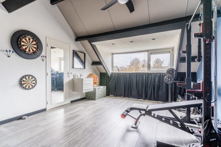 Vanaf de overloop is er via een vaste trap toegang tot de voorzolder, die is voorzien van een laminaatvloer, stucwerk wanden, een gestuct plafond en kastruimte onder de schuinte van het dak. De bergruimte beschikt over de aansluiting voor wasapparatuur en de opstelling van de c.v.-ketel (Remeha, bouwjaar 2014). De grote vierde slaapkamer is afgewerkt met laminaatvloer, stucwerk wanden, een dakkapel en voorzien van een wastafel.