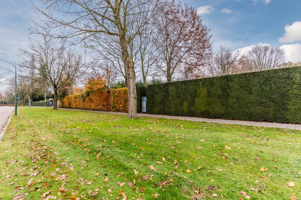 De tuin aan de voorzijde is eveneens keurig aangelegd met gazon, vaste beplanting en een riante oprit.
