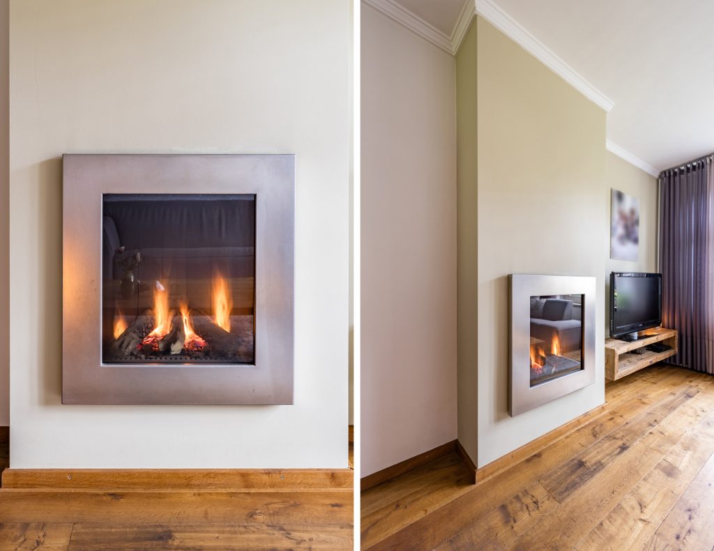 Het goede gevoel gaat maar door bij deze woning want ook de woonkamer voelt meteen als thuiskomen. De ruimte is afgewerkt met een prachtige massief houten vloer, strakke stucwerk wanden en een strak stucwerk plafond met elegante sierlijst en lichtspots. Wat gelijk opvalt zijn de hoge raampartijen aan de voorzijde met de glas-in-loodramen. Het middelpunt is de sfeervolle gashaard waar het in de winter heerlijk toeven is. Aan de achterzijde is het eetgedeelte gelegen met openslaande tuindeuren.