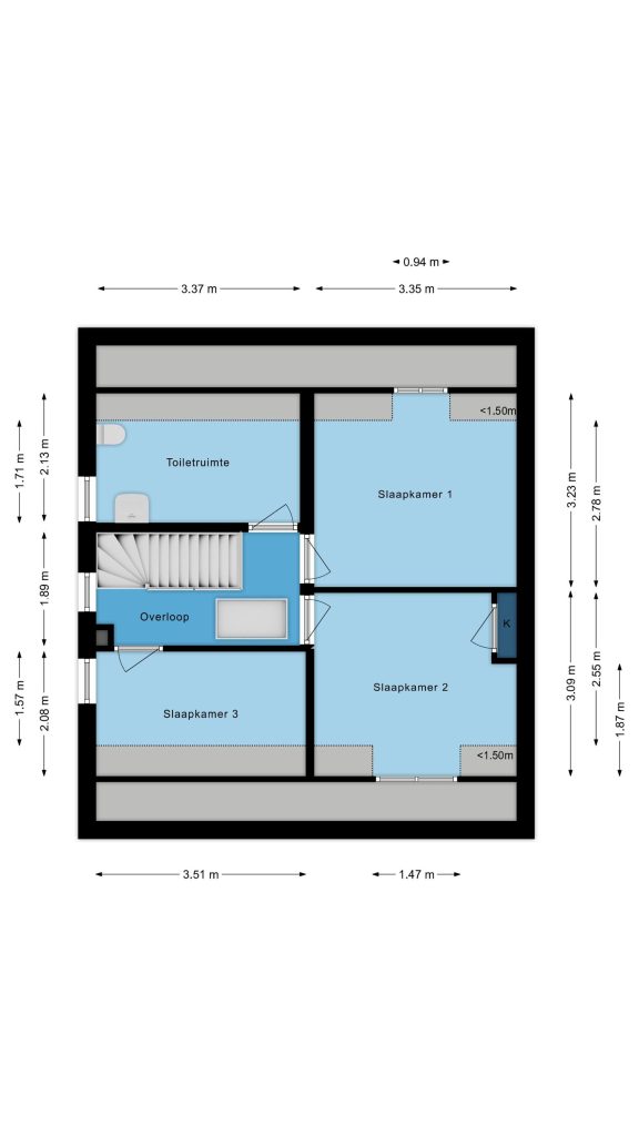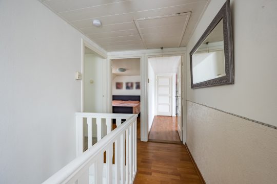 Middels geheel gerenoveerde trappenpartij bereik je de eerste verdieping. De overloop biedt toegang tot drie slaapkamer en een toiletruimte met wastafel welke evt. eenvoudig omgetoverd kan worden tot badkamer. De gehele verdieping is voorzien van kunststof draai-kiep kozijnen en vliegenhorren.