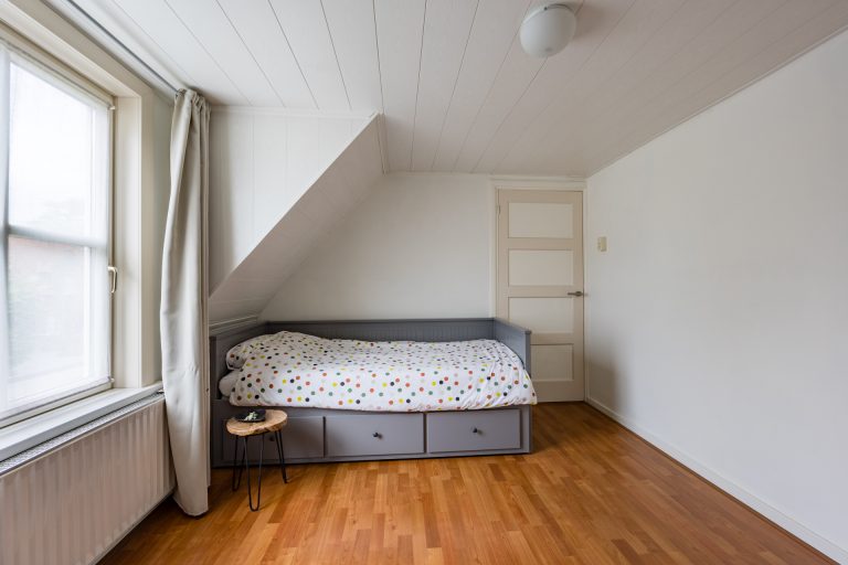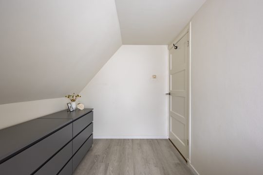 De ouderslaapkamer is aan de achterzijde gelegen en is voorzien van een dakkapel. De ruimte is afgewerkt met een laminaat vloer, stucwerk wanden en MDF plafond. De tweede slaapkamer, welke eveneens van een goed formaat is, is aan de voorzijde gelegen en voorzien van een dakkapel en inbouwkast. De derde slaapkamer is wat kleiner van opzet en kan prima dienen als thuiswerkplek of babykamer.