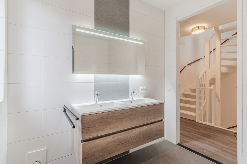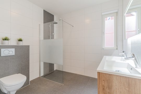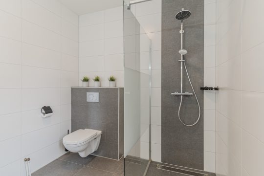 De moderne badkamer is tot in detail verzorgd en biedt alles voor een comfortabel begin van de dag: een ruime inloopdouche, een stijlvol badmeubel met dubbele wastafel, een spiegel met geïntegreerde verlichting en verwarming, een wandcloset en vloerverwarming. Daarnaast is er een aansluitmogelijkheid voor een radiator, zodat de ruimte altijd behaaglijk warm is.