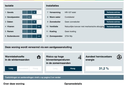 – de woning is voorzien van dak-, spouwmuur- en vloerisolatie.