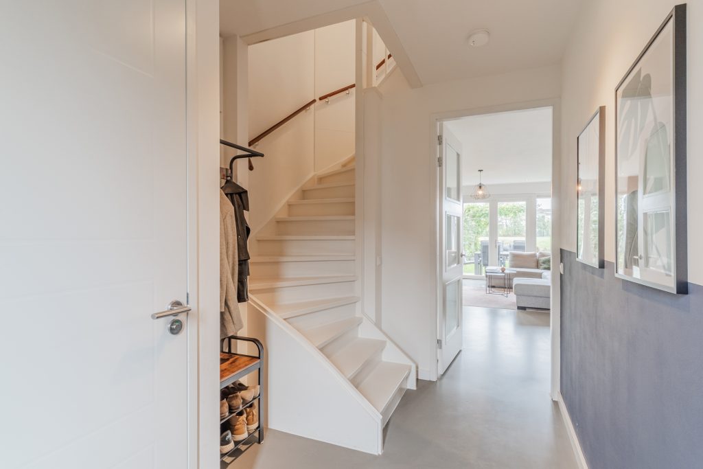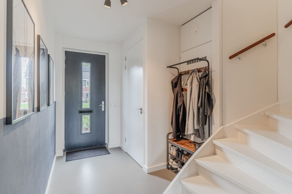 De hal biedt voldoende ruimte voor een garderobe en vormt een prettige entree naar de woonkamer en keuken. Alles straalt rust, kwaliteit en een eigentijdse stijl uit — precies wat je mag verwachten van een woning als deze.