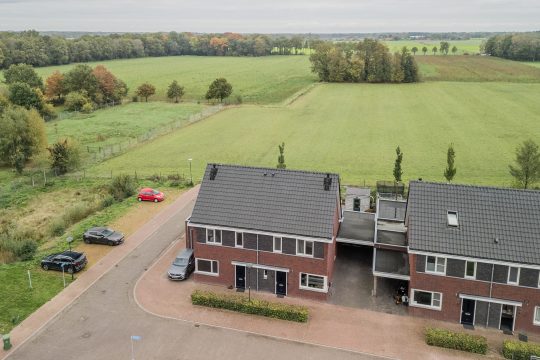 Instapklare twee-onder-een-kapwoning (2018) met uitbouw, carport, berging én magnifiek vrij uitzicht over de achter de woning gelegen landerijen.