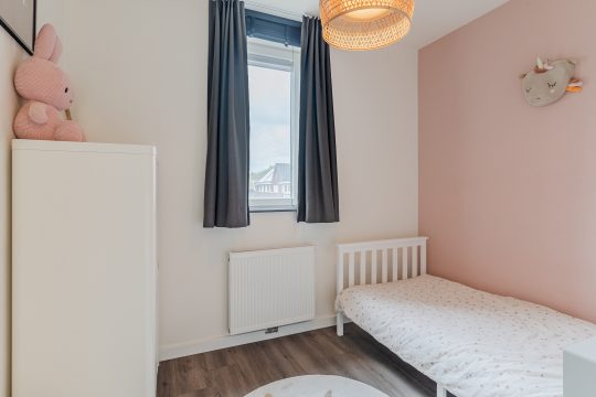 Aan de voorzijde liggen twee fijne kinderslaapkamers, beide goed van formaat en ideaal te gebruiken als slaapkamer, werkkamer of hobbyruimte. De kamers zijn netjes afgewerkt en voorzien van grote ramen met een prettige lichtinval.