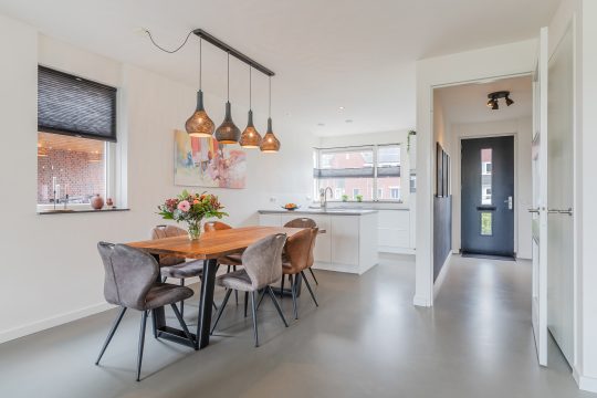 – de begane grond is afgewerkt middels een strakke gietvloer. Op de verdiepingen ligt een moderne laminaatvloer.