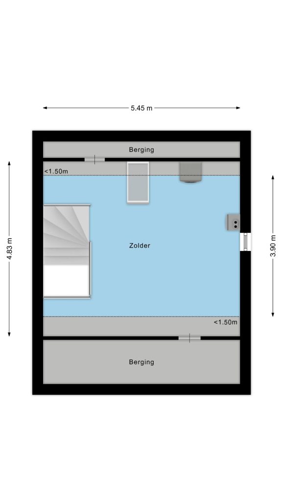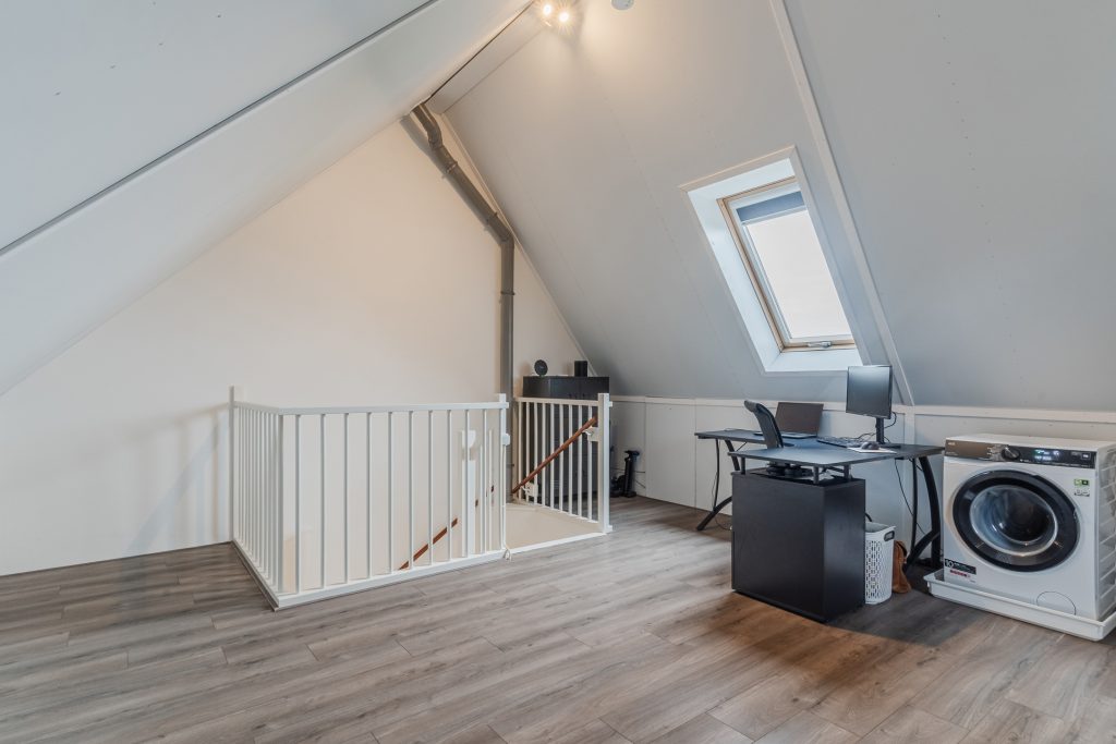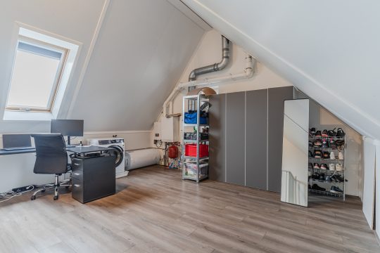 Via de vaste trap bereik je de royale zolderverdieping. Deze verdieping biedt een zee aan ruimte en is dankzij de hoge nok, het grote dakraam én het zijgevelraam heerlijk licht.