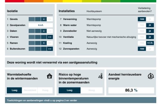 – de woning beschikt over 14 zonnepanelen (360 Wp per stuk, geplaatst in 2022).