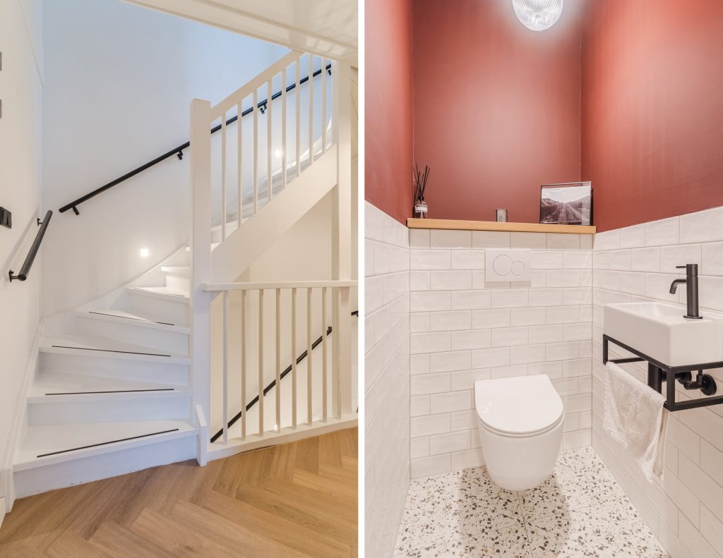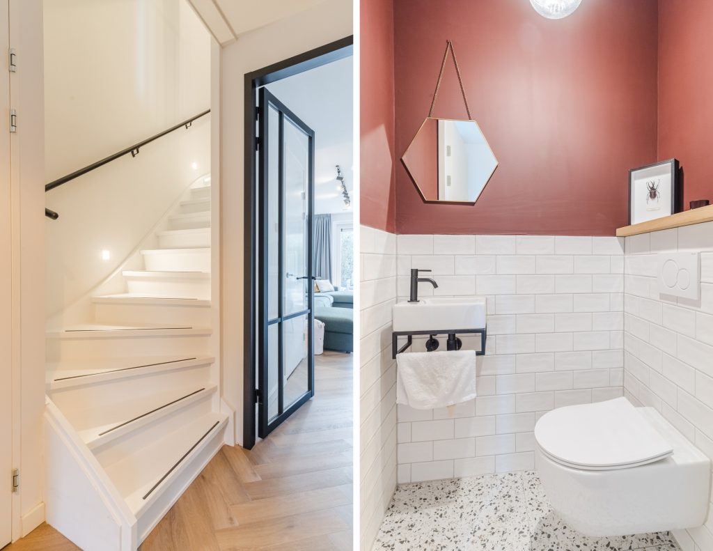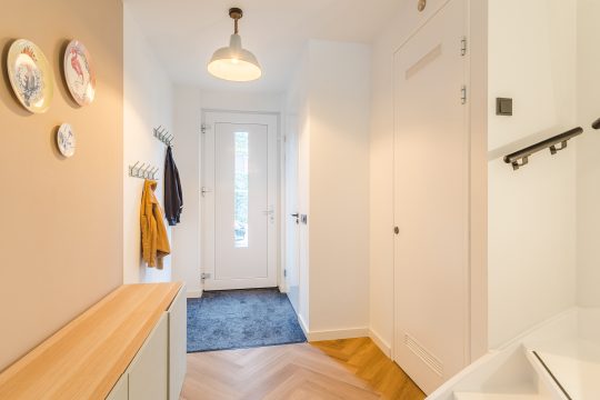 Via de fraaie entree stap je binnen in een royale hal met een moderne toiletruimte, meterkast (ruim voldoende groepen en glasvezelaansluiting), toegang tot de woonkamer en trapopgang naar de eerste verdieping.