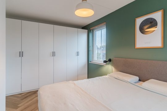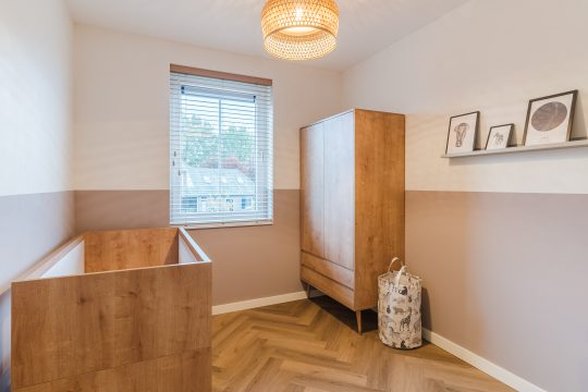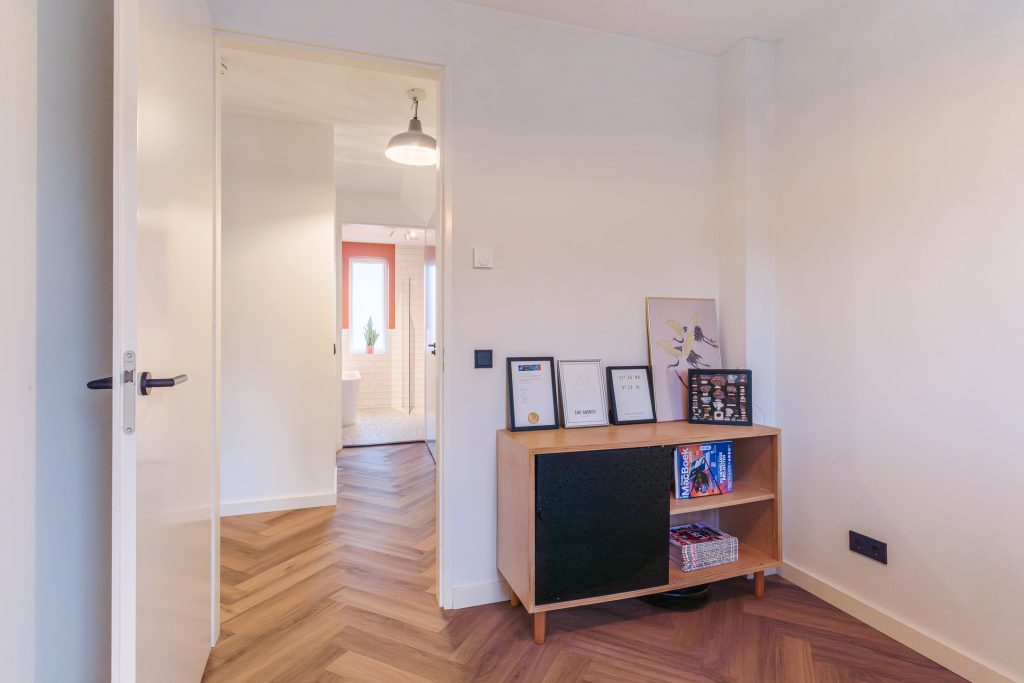 Drie zeer nette slaapkamers welke allen eveneens zijn voorzien van een fraaie visgraat PVC-vloer en strak gestucte wanden.