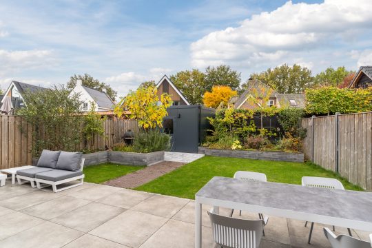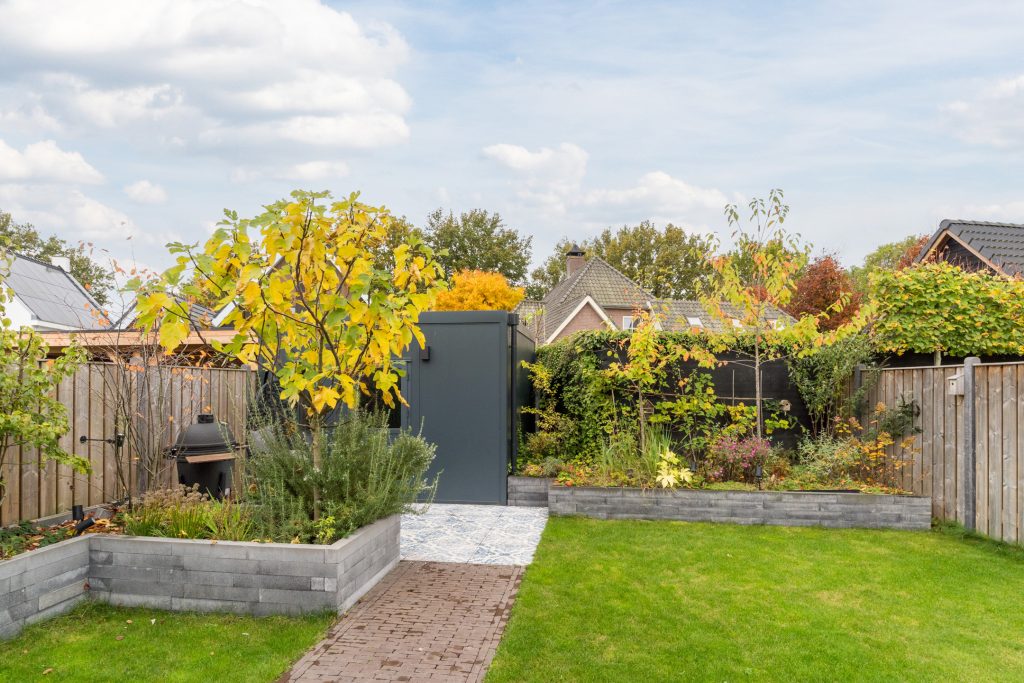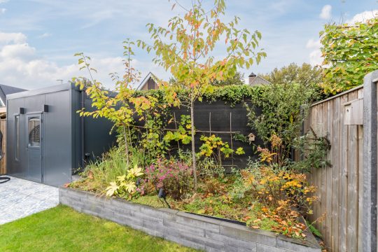 De achtertuin ligt op het zonnige zuidwesten – ideaal voor liefhebbers van zon en buitenleven! De tuin is smaakvol aangelegd met een mooi terras, fraaie beplanting en een ruime berging achterin de tuin. Een heerlijke plek om te ontspannen, te barbecueën of te genieten van lange zomeravonden.