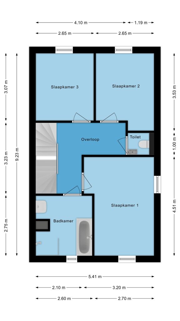 De ruime overloop biedt toegang tot drie goed bemeten slaapkamers, een separaat toilet en de luxe badkamer.