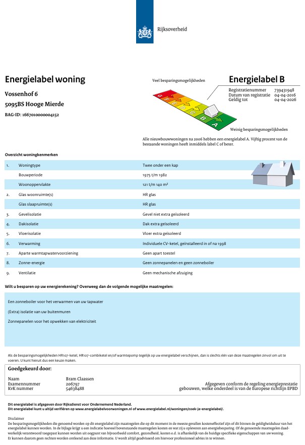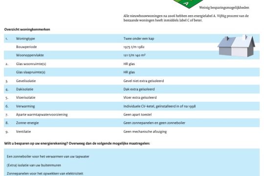 – de woning is voorzien van dak-, spouwmuur- en vloerisolatie.