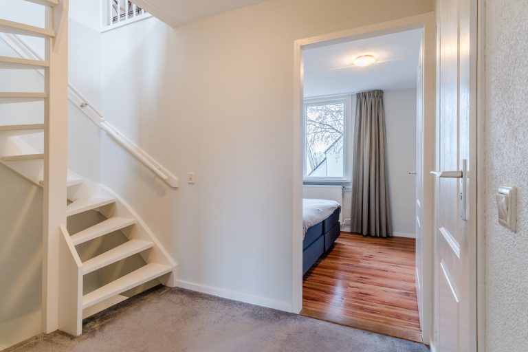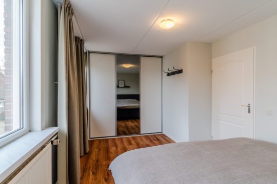 Op de overloop bereik je drie ruime slaapkamers, allemaal voorzien van een laminaatvloer, strak stucwerk en veel lichtinval. De ouderslaapkamer beschikt bovendien over een praktische 3-deurs kastenwand.