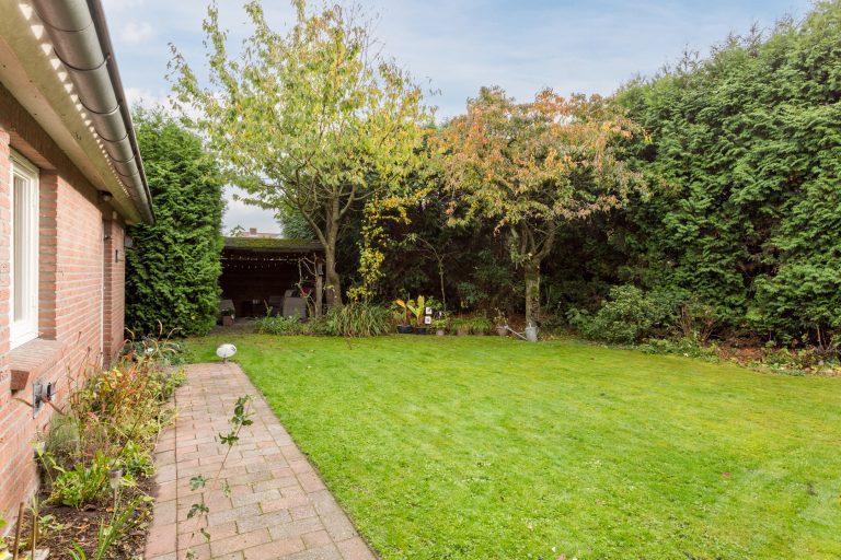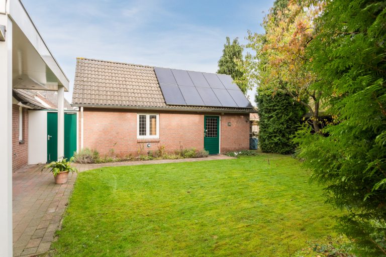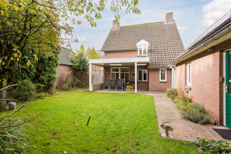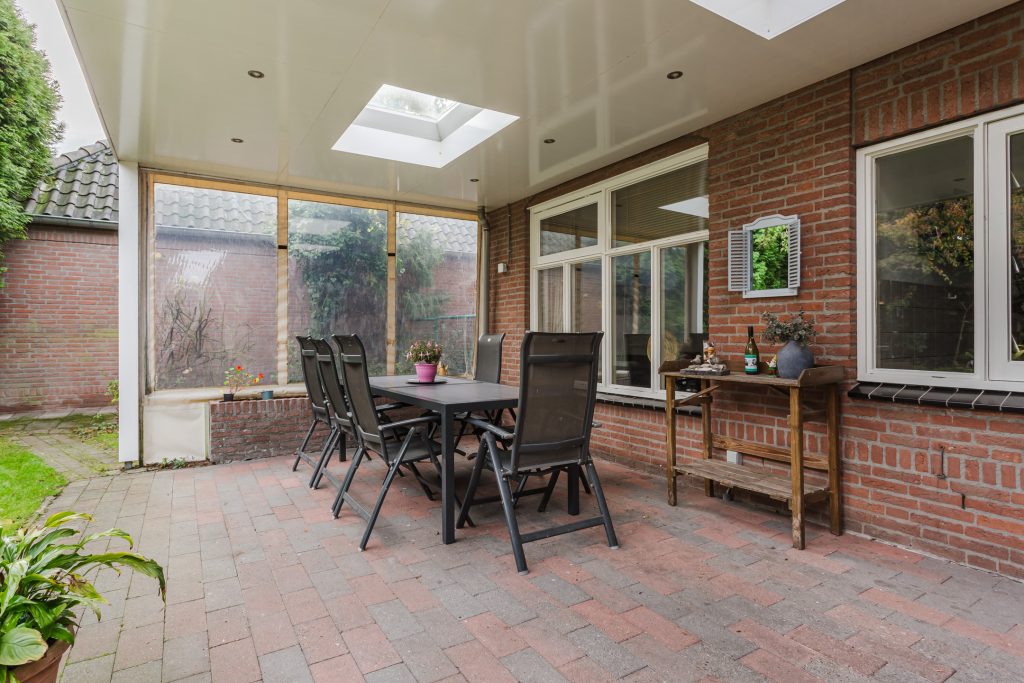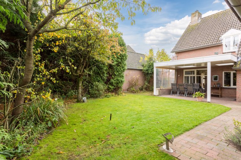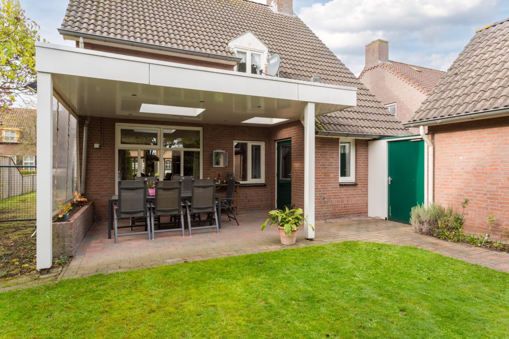 De woning beschikt over een ruime tuin met veel groen. Buiten kun je heerlijk van het weer genieten onder de mooie overkapping met spots en twee lichtkoepels. Aan de achterzijde van het perceel is een tweede overdekt zitje aanwezig en een grondwaterpomp. Tevens is er middels de eigen achterom toegang naar de oprit en de garage. De in spouw gemetselde garage is voorzien van een geïsoleerd dak, elektra, gootsteen, omvormer zonnepanelen, dubbele deuren naar de oprit en vlizo trap naar een praktische bergzolder.