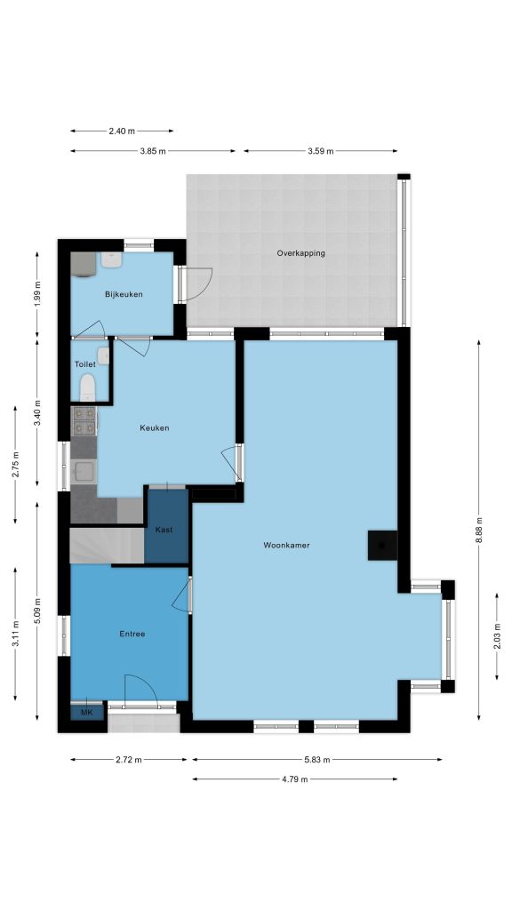 Middels eigen oprit bereik je de ruime entreehal van de woning. Vanuit hier heb je toegang tot de meterkast (8 groepen & glasvezel), de eerste verdieping en de woonkamer. Daarnaast is er volop ruimte voor een garderobe te plaatsen.