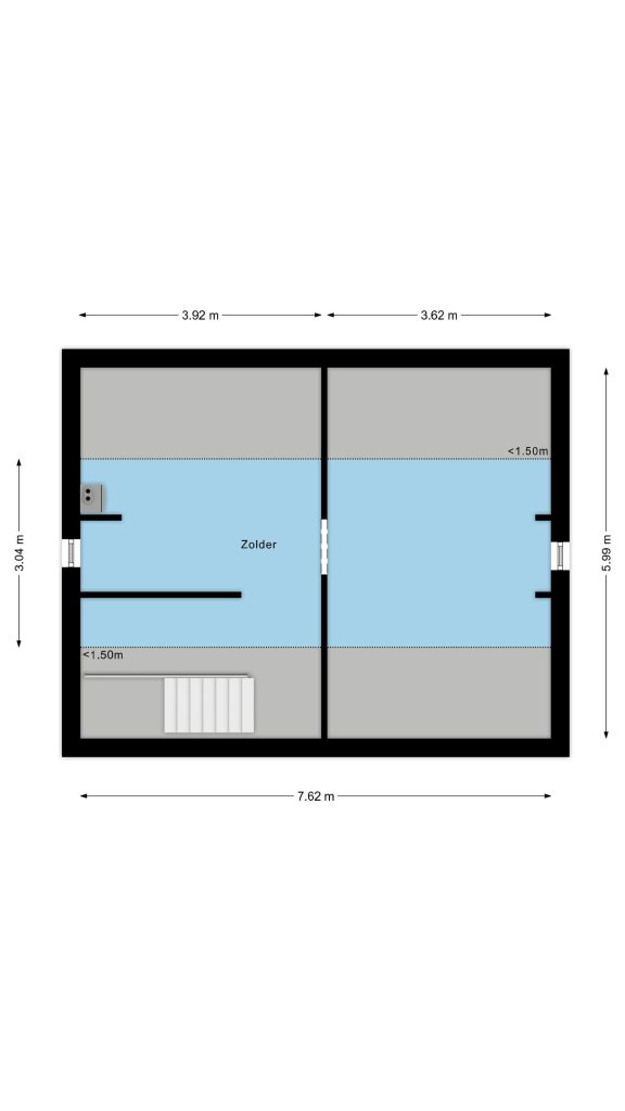 – Grote zolder waar ruimte is voor een potentiële slaapkamer