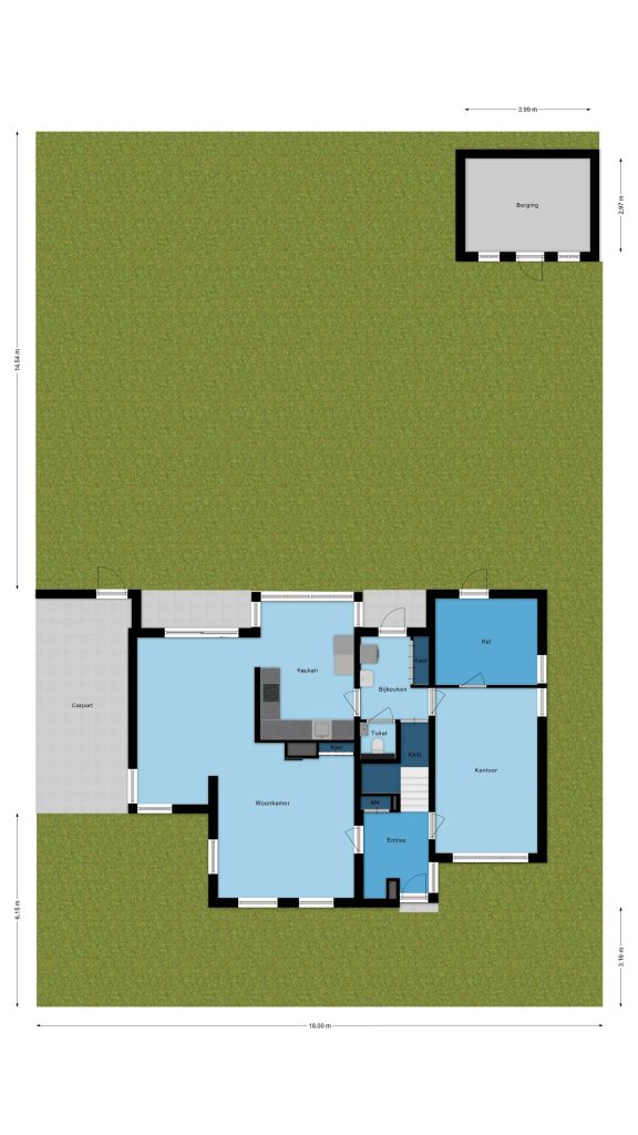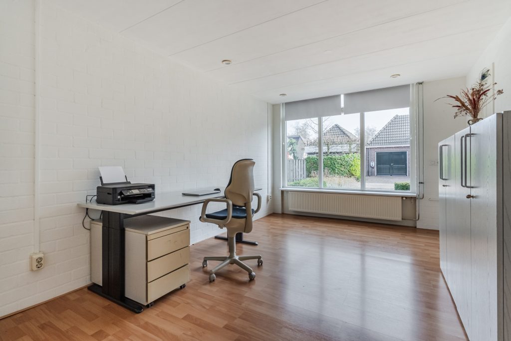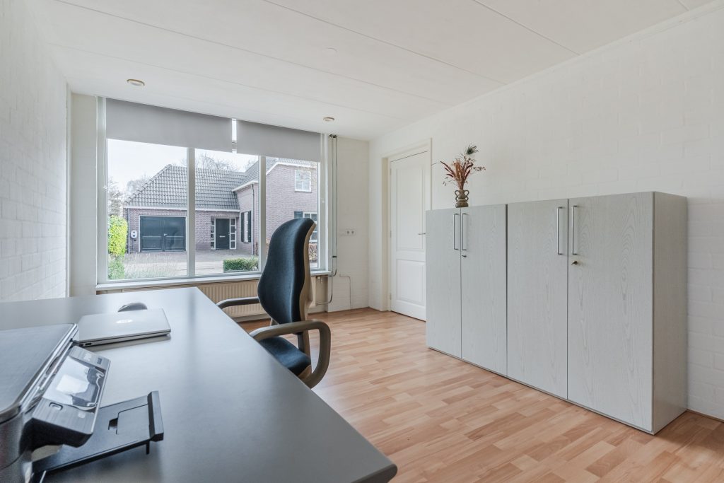 Zowel vanuit de entree als de bijkeuken bereik je een royale extra kamer van circa 24 m². Deze ruimte is ideaal als kantoor, speelkamer of praktijkruimte aan huis. Aansluitend is er een praktische berging met elektra voor fietsen.