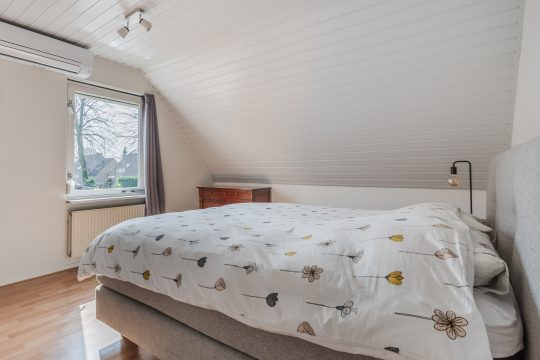 De master bedroom aan de achterzijde is zeer ruim en voorzien van een inbouwkast, zonnescreen en airco van Mitsubishi uit 2024 die de gehele verdieping kan koelen. Slaapkamer twee aan de voorzijde beschikt over een dakkapel en bergruimte onder de schuine kant. Slaapkamer drie is royaal en eveneens voorzien van een dakkapel en geeft toegang tot een extra bergruimte met de Cv installatie van Remeha uit 2022. Slaapkamer vier ligt aan de achterzijde en is uitstekend geschikt als volwaardige kinder of logeerkamer.