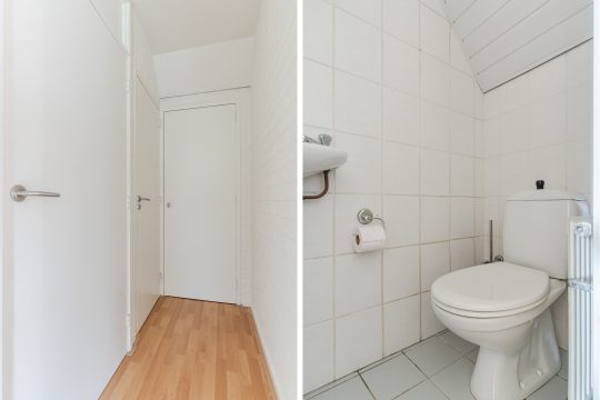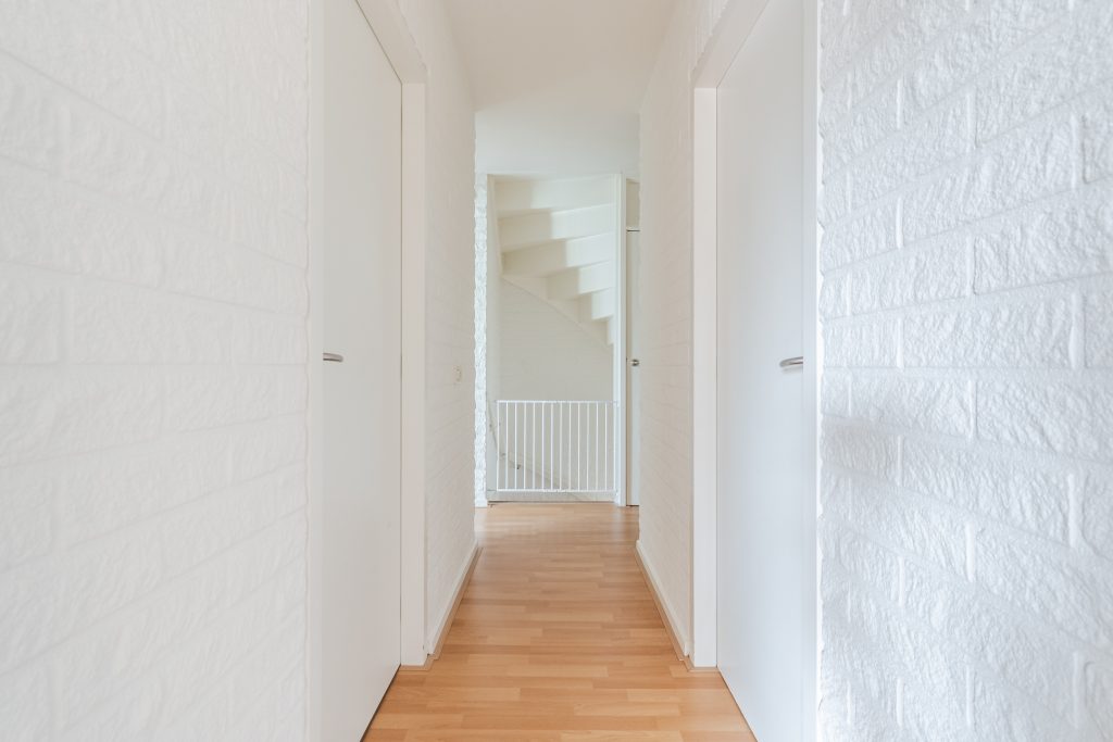 Op de eerste verdieping kom je op een ruime overloop met separate toiletruimte, bergkast en toegang tot vier slaapkamers en de badkamer.