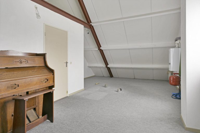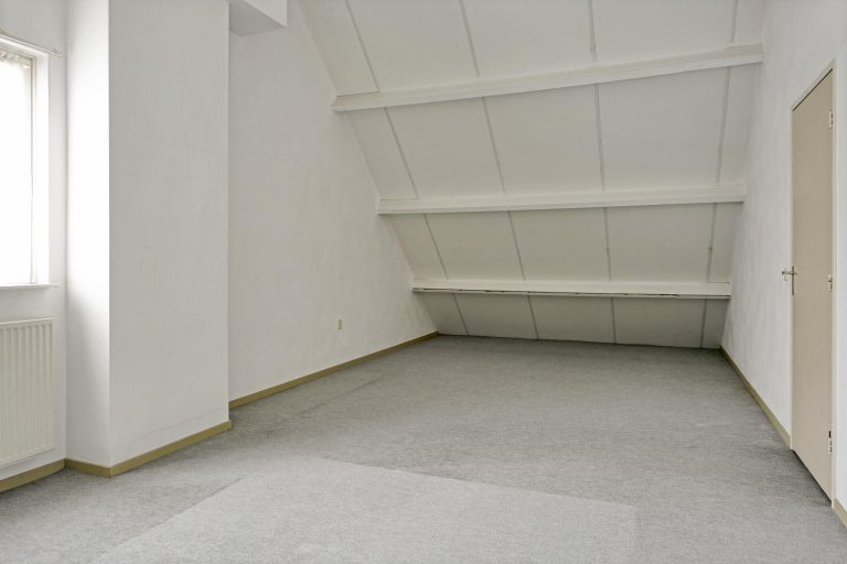 Grote slaapkamer met vloerbedekking, stucwerkwanden, opstelling van de c.v.-installatie aan aansluitmogelijkheid voor een badkamer (voorzieningen zijn reeds aanwezig). Bij het realiseren van een badkamer kan er eenvoudig een scheidingsmuur tussen slaap- en badkamer worden gerealiseerd. In plaats van de badkamer is het ook mogelijk om deze kamer te splitsen in 2 slaapkamers. Daarnaast is er vanuit deze slaapkamer toegang tot een grote zolder welke boven de overloop is gesitueerd.